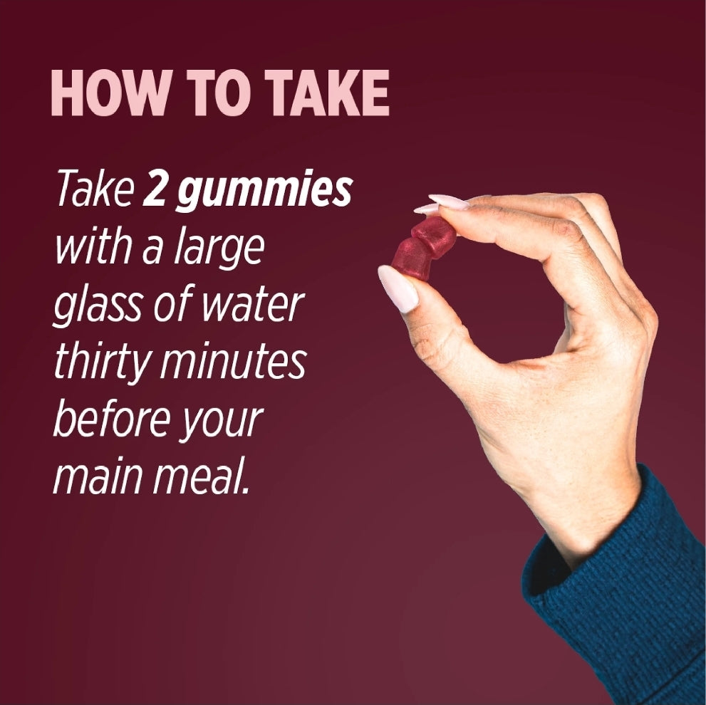 The recommended usage is typically taking two gummies before your main meal, along with water.