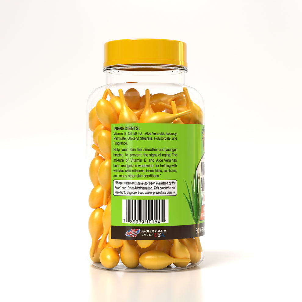 The mixture of Vitamin E and Aloe Vera has been recognized worldwide for helping prevent signs of aging, and good for several conditions. Applying one capsule nourishes the skin making it look smooth and radiant.